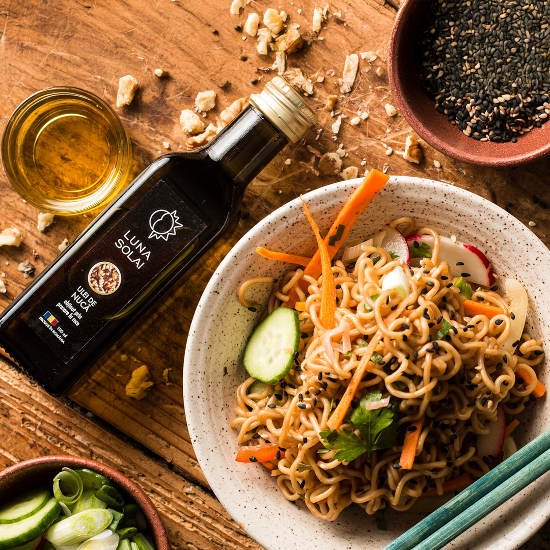 Walnut oil, obtained by cold pressing the dried Romanian walnut fruit, is a 100% natural oil with multiple benefits for the body.