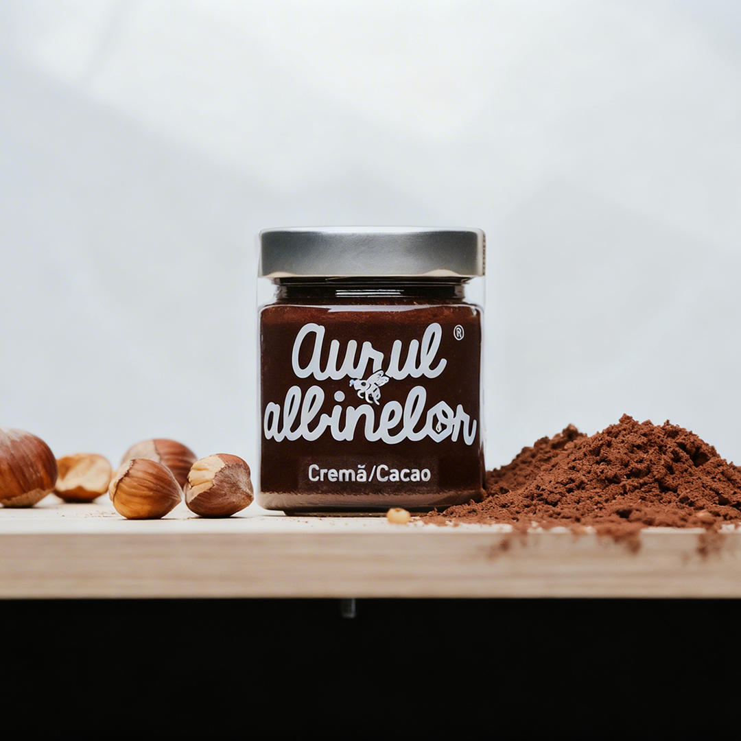 Ingrediente: 85% miere de albine, 5% cacao, 10% alune.