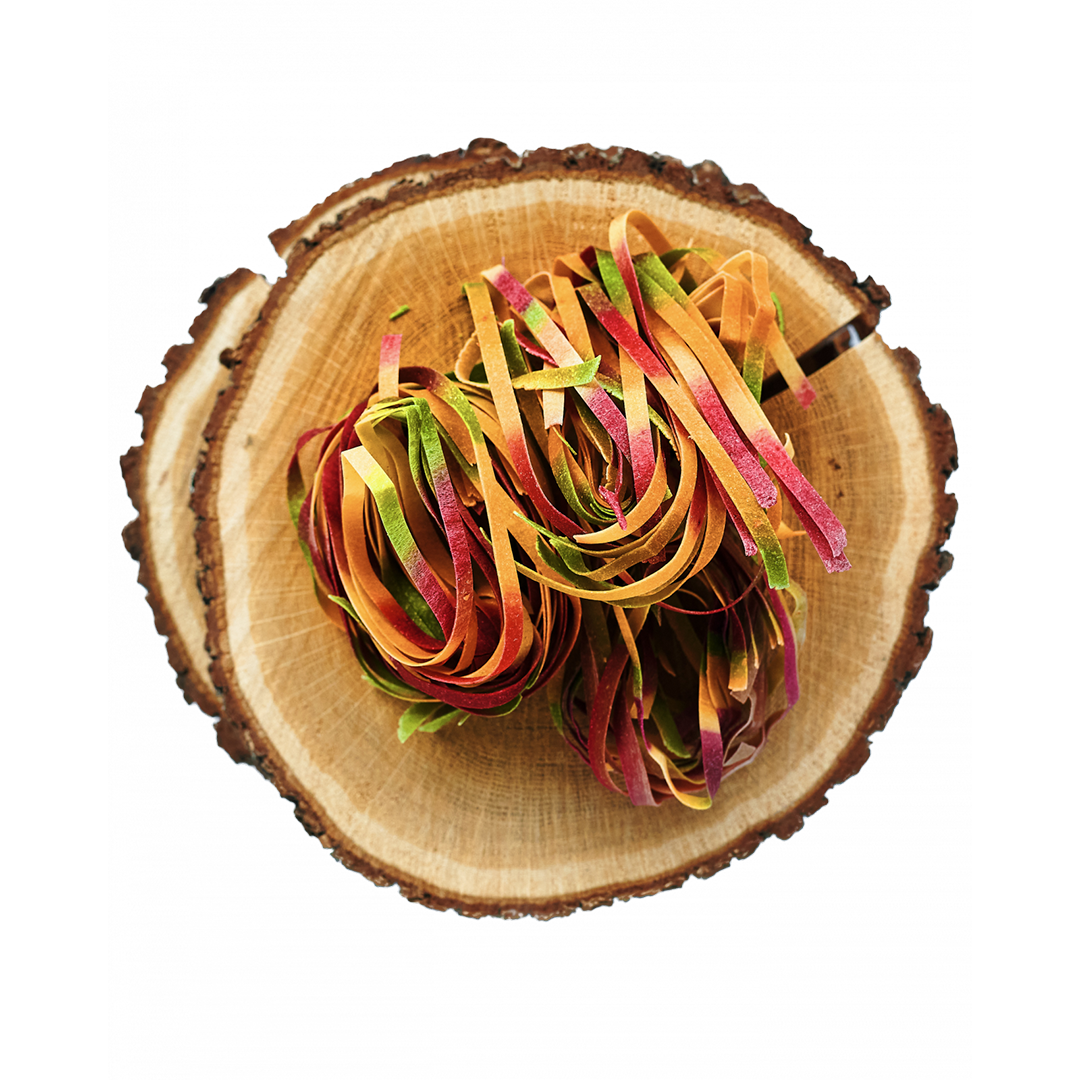 No', paste ca astea nu-s orice paste! Le facem cu grijă și cu mare rânduială, din ce-i mai bun din natură: făină de grâu dur de cea mai bună calitate, ouă proaspete, spanac ce dă culoarea verde vie, sfeclă cu roșu intens și ardei, de la galben la roșu, plini de vitamine. Rezultatul îi o adevărată feerie pe masă, cu culori naturale obținute numai din legume, ca să-ți încânte nu numai gura, ci și ochii!