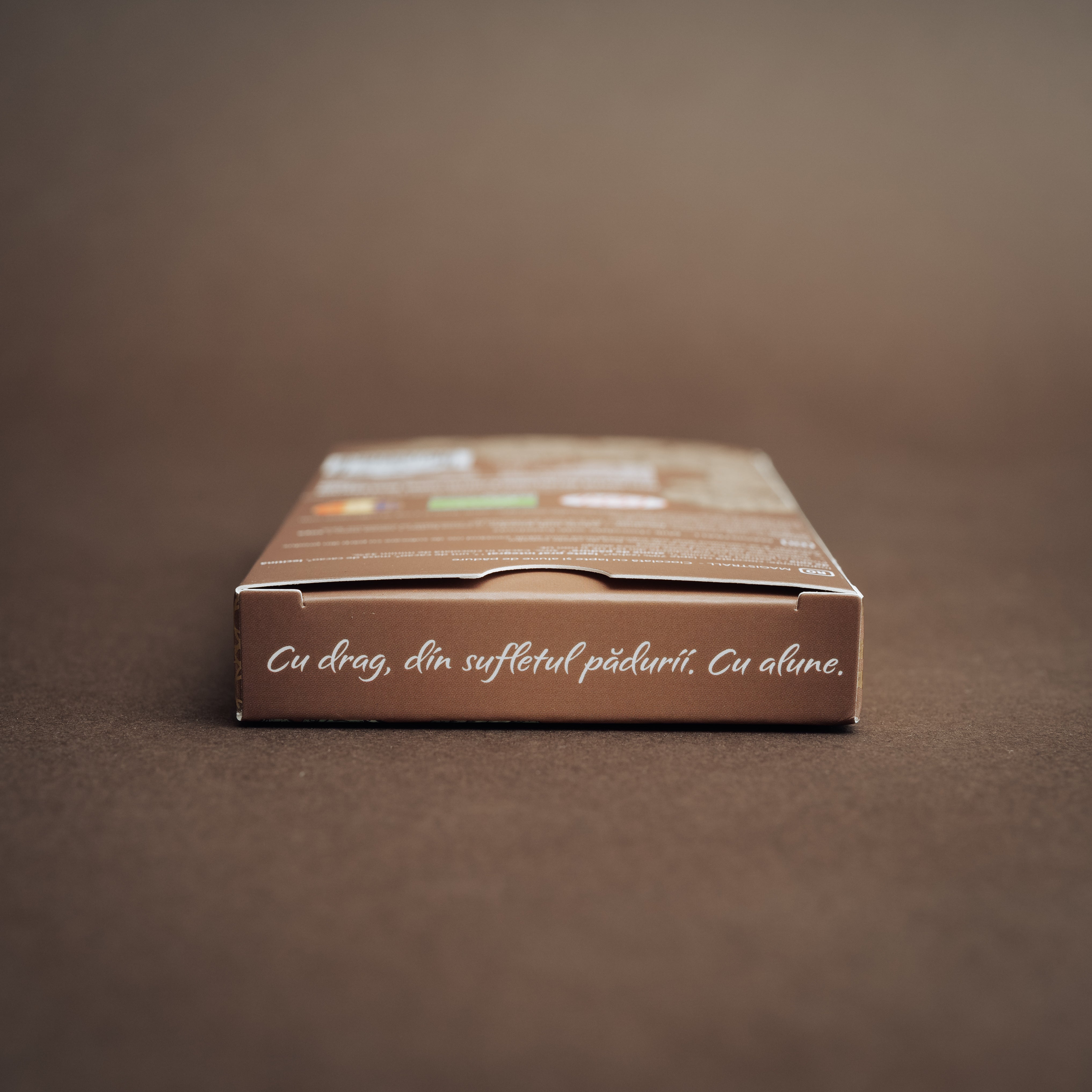 Cu un conținut generos de 30% alune de pădure și o rețetă care respectă cele mai înalte standarde de calitate, această ciocolată nu doar că îți încântă papilele gustative, ci și îți oferă o explozie de nutrienți și beneficii. Ingredientele certificate ecologic, atent selecționate, garantează nu doar un gust deosebit, ci și un respect profund față de natură.
