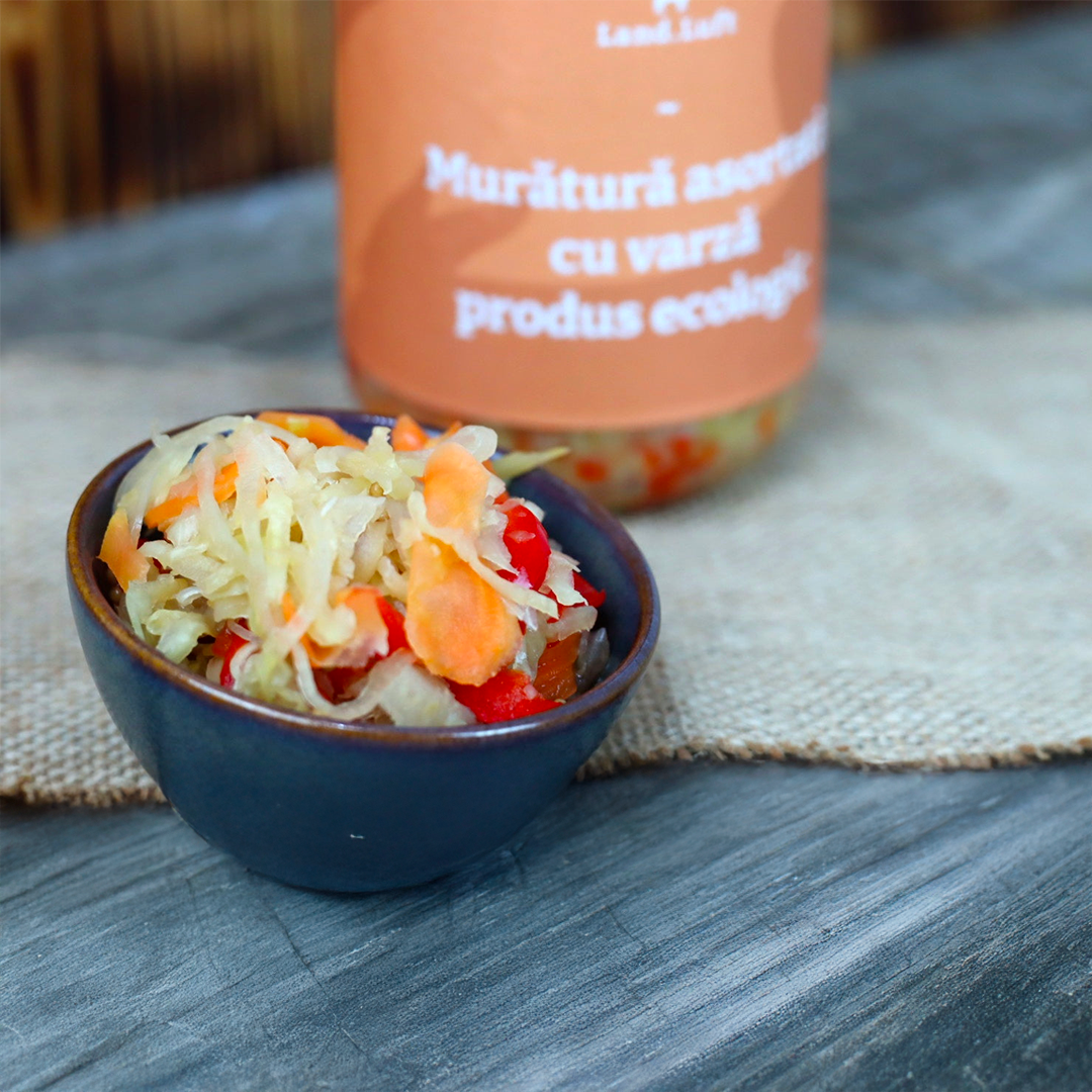 Preparată în ferma noastră din Carei, din legume cultivate ecologic, fără pesticide sau îngrășăminte chimice, această murătură aduce un gust autentic și sănătos pe masa ta.