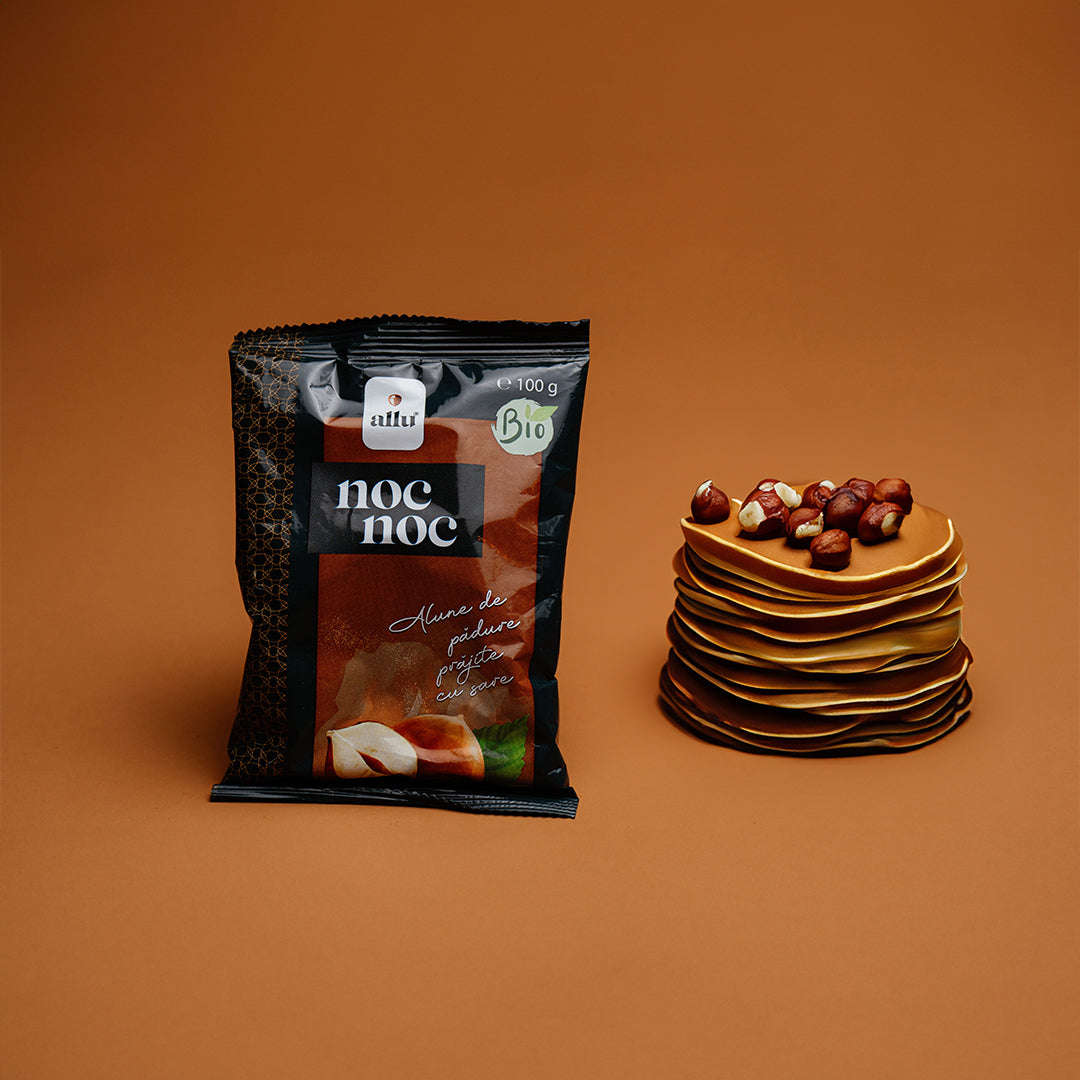 Sărbătorește esența pură a naturii, cu Noc Noc - alune de pădure prăjite cu sare ce reprezintă o experiență gustativă distinctă, punctată de armonia dintre savoarea alunelor și sarea perfect dozată. Pregătite cu atenție din alune de pădure ecologice, aceste delicii crocante sunt prăjite la perfecțiune. Apoi, pentru a echilibra gustul și a amplifica caracterul lor autentic, alunele sunt presărate cu sare. Guma arabică obținută din salcâmi africani conferă o textură fină și asigură conservarea optimă a alunelor. Acest produs reprezintă un răsfăț gustativ ce evocă simplitatea și puritatea naturii.