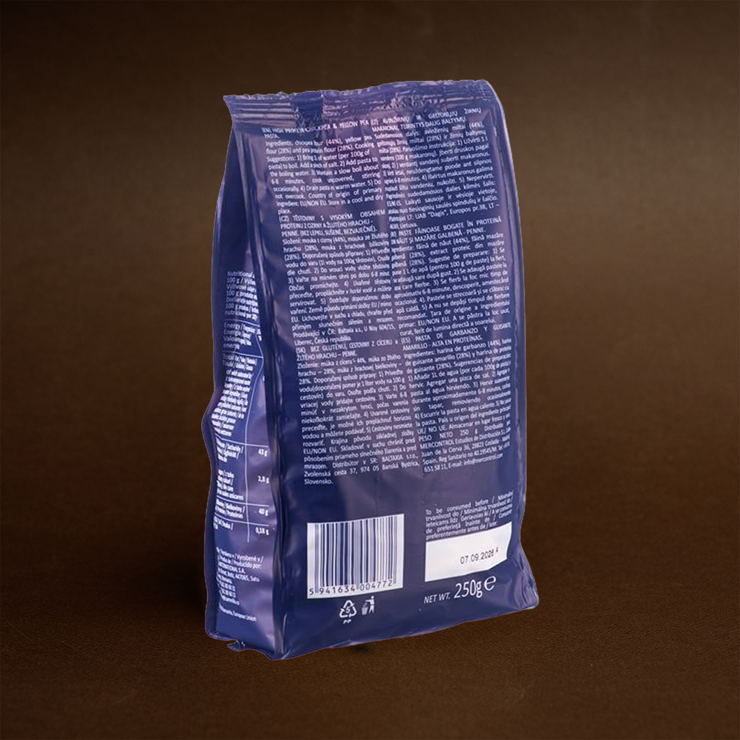 Ingrediente: făină din năut (44%), făină de mazăre galbenă (28%), extract proteic din mazăre galbenă (28%).